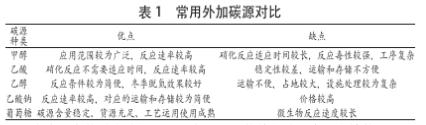 常用的外加碳源有甲醇、乙酸、酒業(yè)廢水、乙酸鈉、淀粉、葡萄糖和食品加工廢水等。表1所示常見(jiàn)的外加碳源的對(duì)比效果: